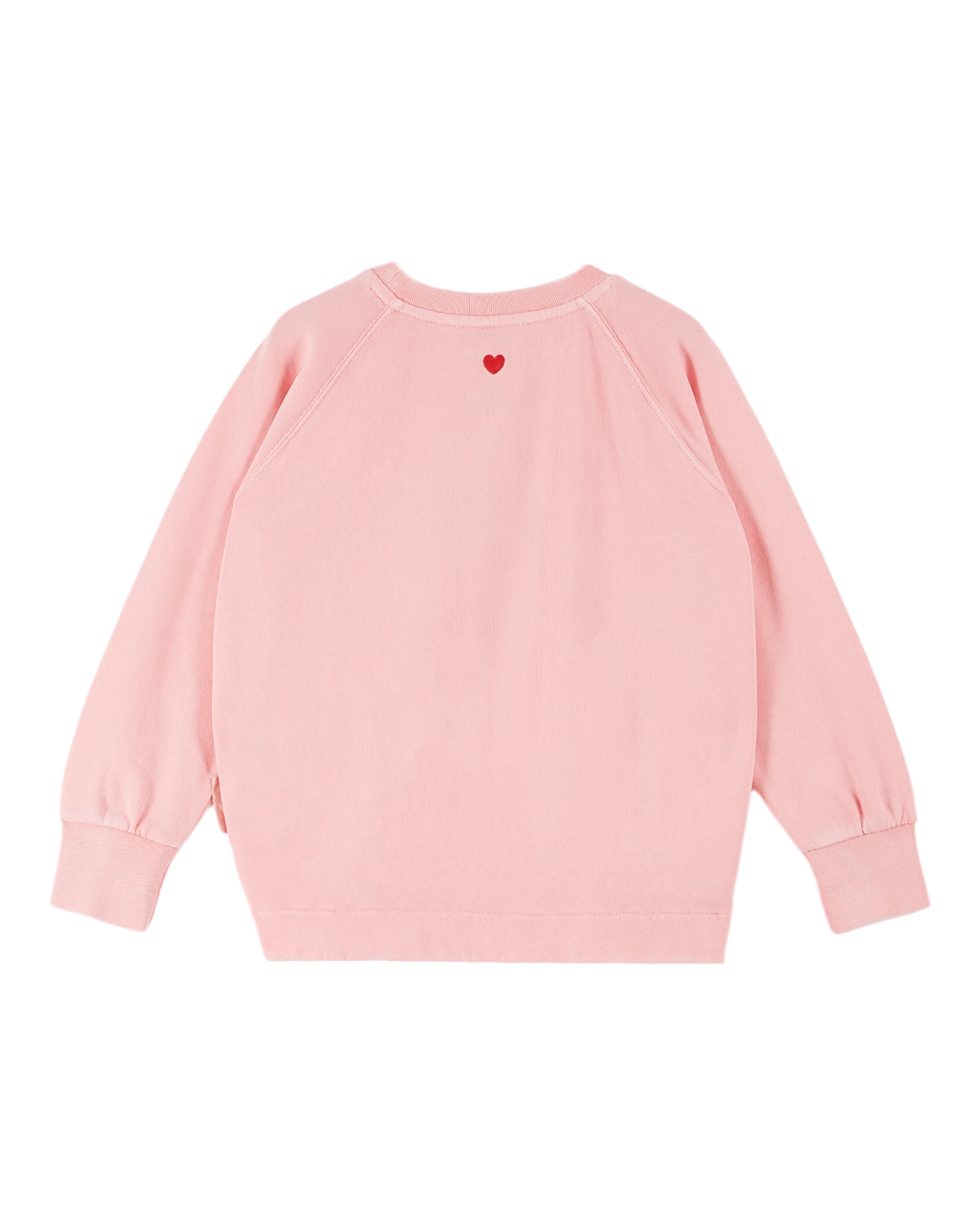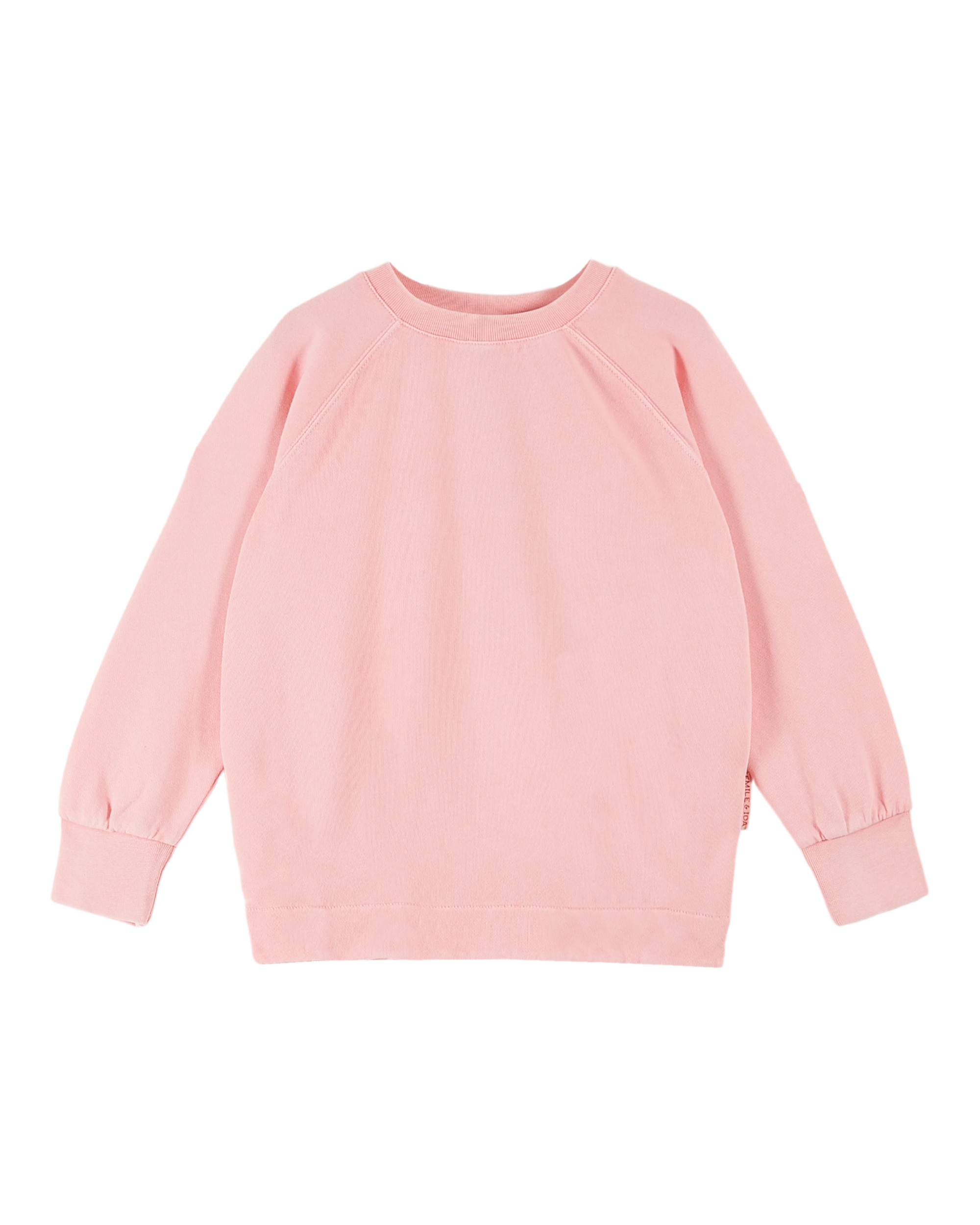 Sweatshirt in plain candy-pink organic cotton. A sweatshirt with long raglan sleeves, round neckline finished with ribbing, like the cuffs, around the neckline and at the hem. And, of course, the softest fabric. This product is piece-dyed using mineral pigments, a more environmentally-friendly coloring method. It also offers a subtle, unique color that develops a patina over time.