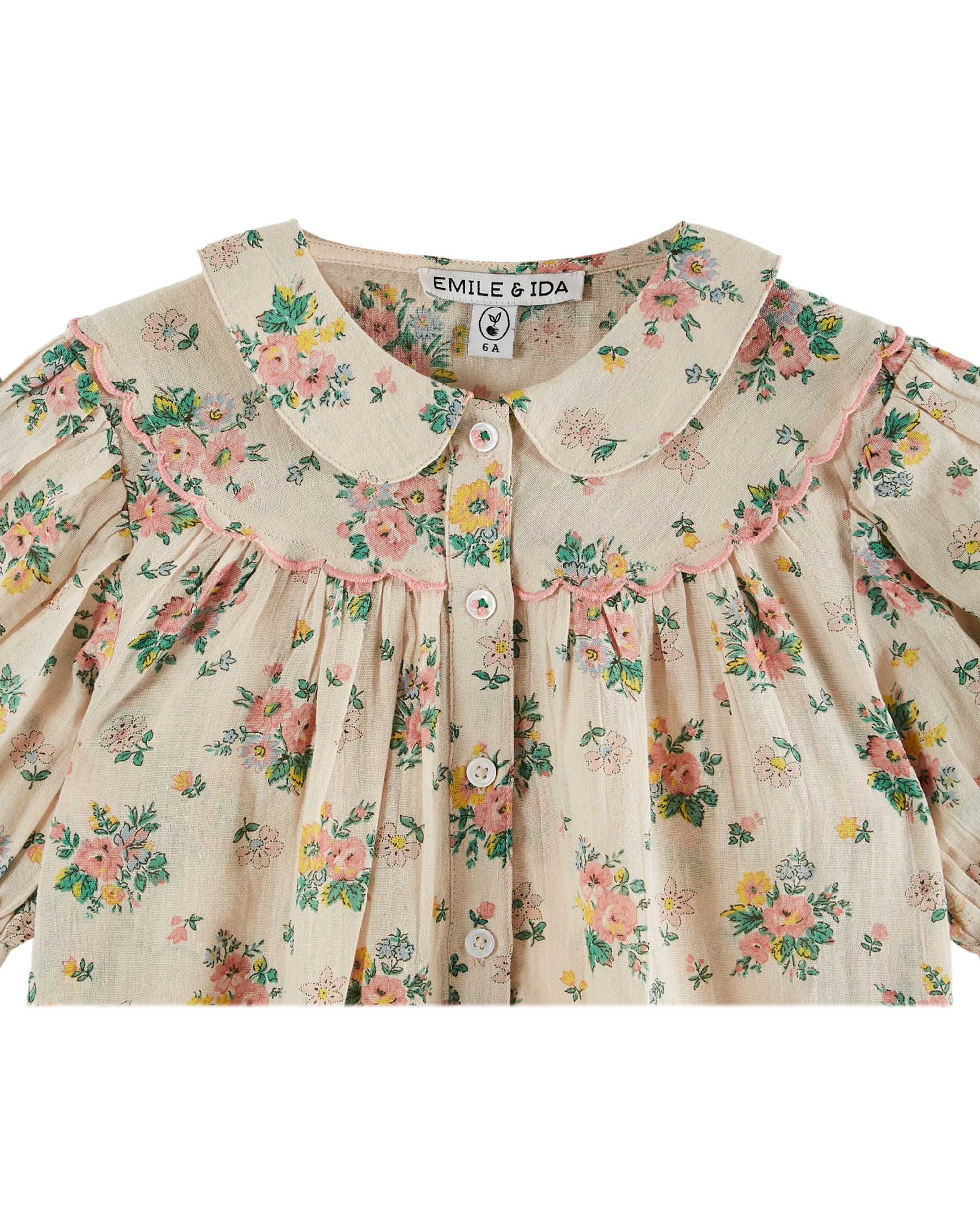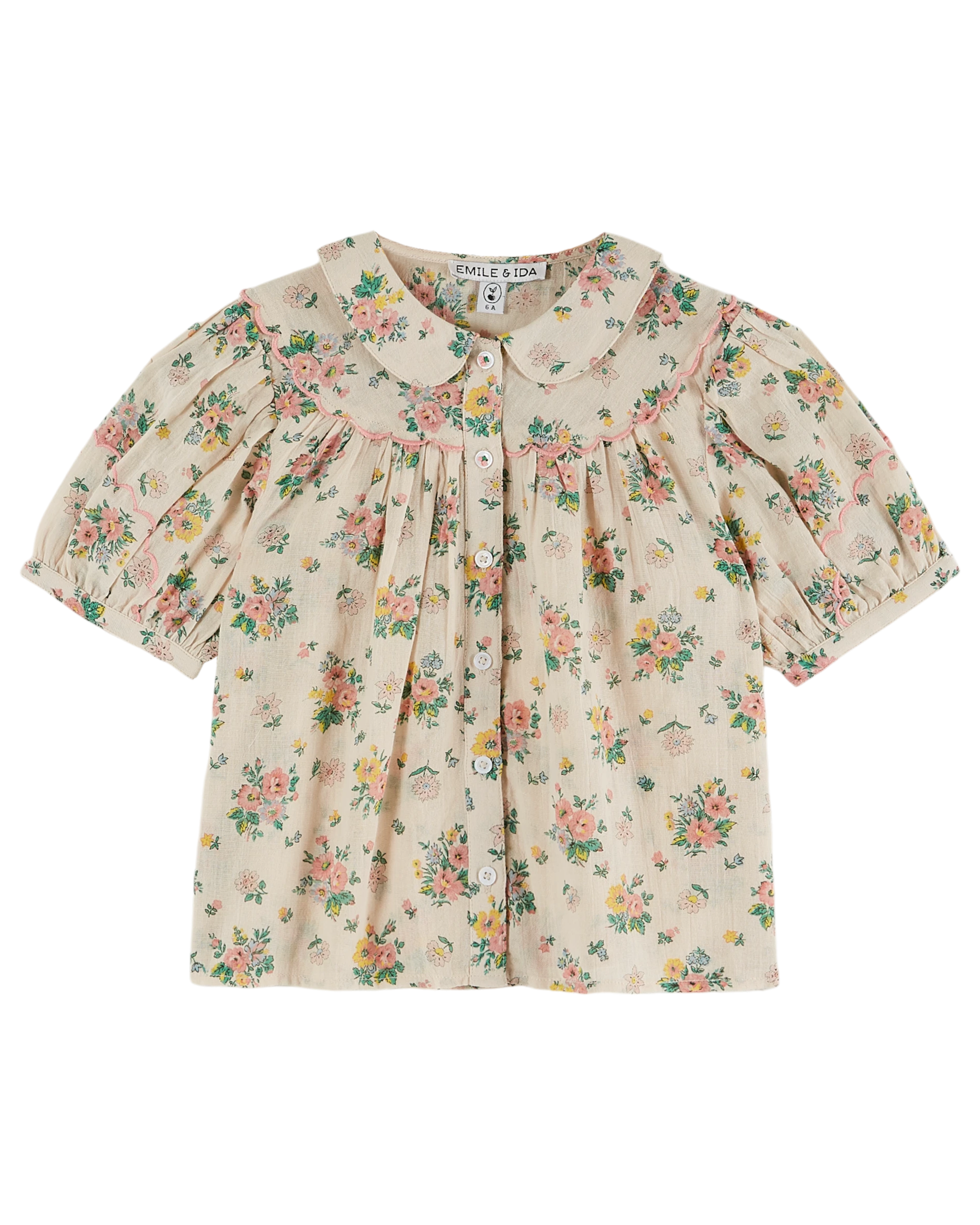 Emile et Ida Girl Pink Spring Scalloped Blouse | Pink Spring