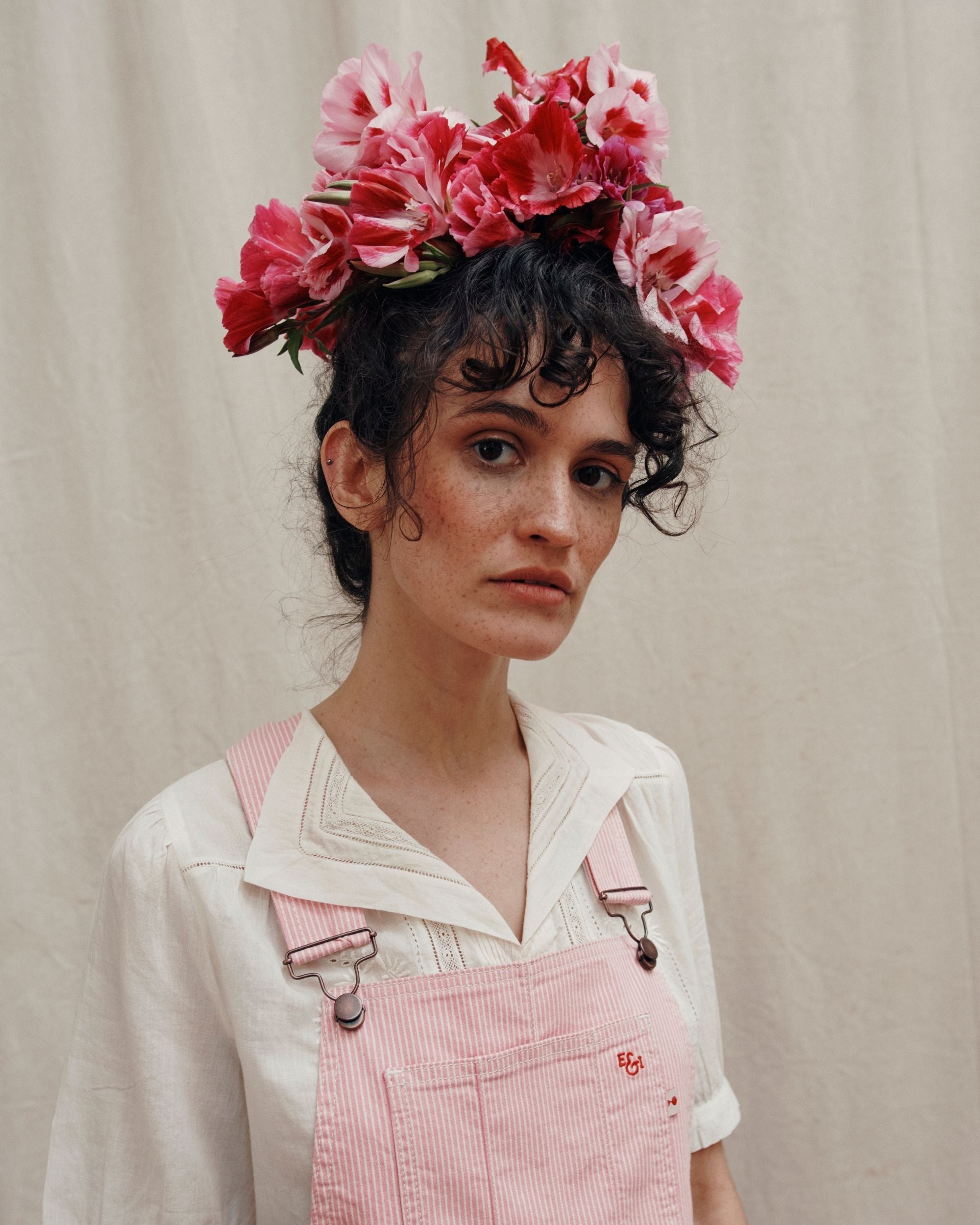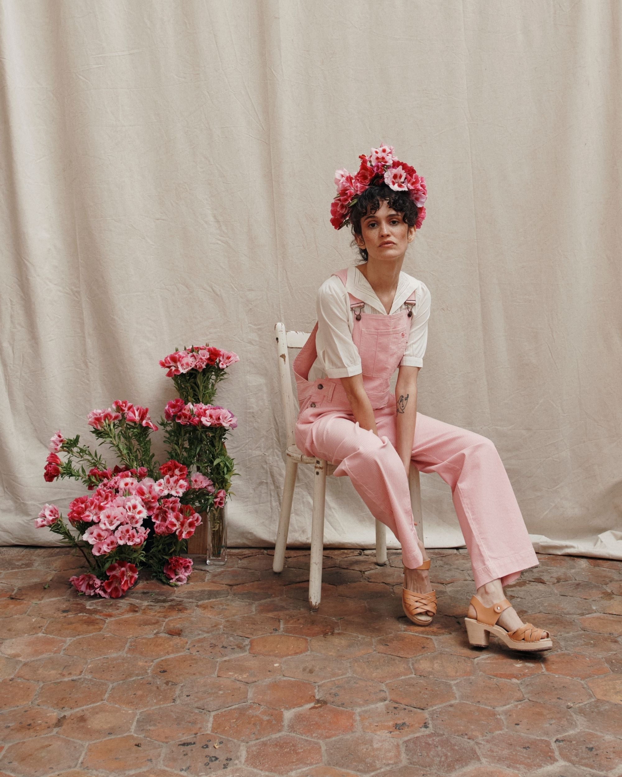 Overalls in white and pink striped denim cotton canvas, a sturdy, timeless fabric whose diagonal twill weave offers both comfort and style. The high back allows great freedom of movement, and the height-adjustable shoulder straps stay perfectly in place, preventing them from slipping down your arms.